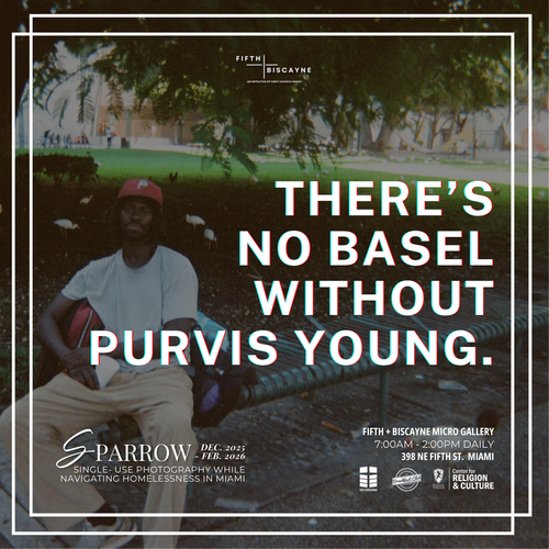 SPARROW features street photography by Blue, Chris, Timeless Jubilee, Reese, and Thor—local photographers navigating homelessness—under the artistic direction of Miami-based artist Christopher Mitchell. Drawing its name from the Cape Sable seaside sparrow, an endangered bird native to South Florida, SPARROW embodies themes of fragility, endurance, and quiet resilience. The exhibition captures the overlooked rhythms of Miami’s urban life through the lens of those often unseen within it.